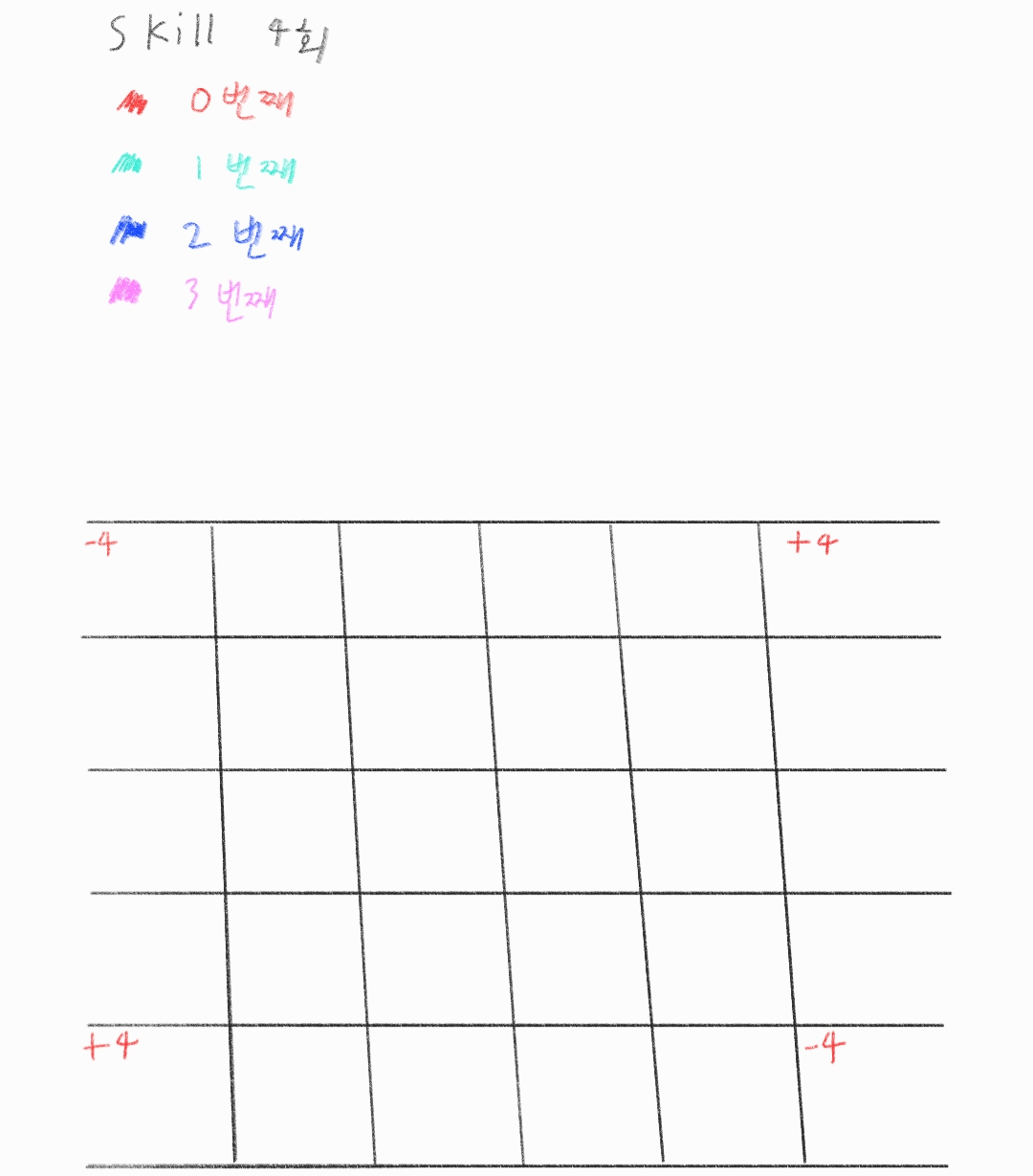 0번째 skill -> 0,0 ~ 3,4까지 -4만큼 공격